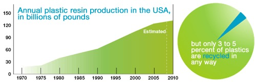 Items like plastic packaging, bags and bottles are thrown away every day, and end up in trash sites as well as in forests, creeks, rivers, seas, and oceans around the world. While some of these items are recycled, the growth of plastic consumption and its improper disposal currently outpace efforts to recycle and produce post-consumer plastic materials.